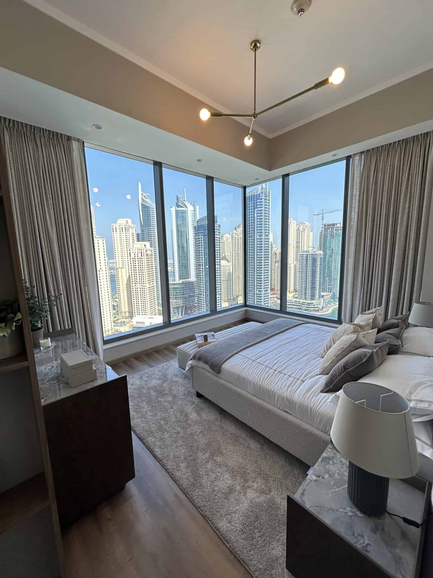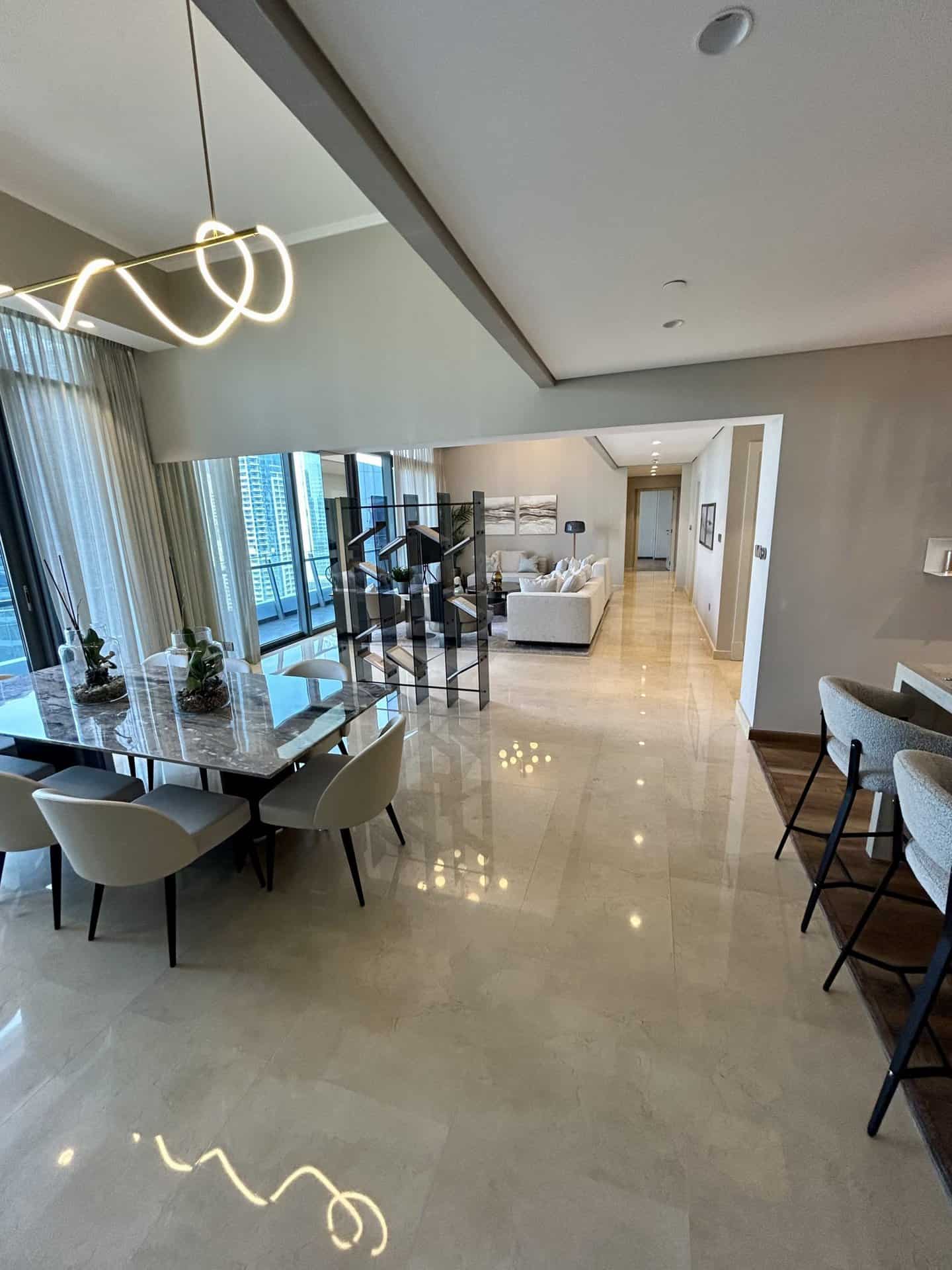 Erleben Sie mit dieser einzigartigen 5-Zimmer Wohnung eine unvergleichliche Qualität des Premium Bauträgers Palma Holding in einer einmaligen Lage direkt in der Dubai Marina. Der bekannte Silverene Tower wurde von der Palma Holding errichtet und die hier nunmehr zum Verkauf stehende Luxus-Wohnung aufwendig saniert und möbliert. Die Wohnung befindet sich im 30. Stock des Towers A und ermöglicht einen einzigartigen 360 Grad Blick in der Dubai Marina – auf den Hafen und sogar direkt auf das Meer. Die Wohnung verfügt über einen weitläufigen offenen Wohn- /Essbereich mit offener Showküche und geschlossener Prepare-Küche. Bei 3 m Deckenhöhe erlebt man ein luxuriöses Raumgefühl, bei hervorragender Bauqualität und luxuriösem Finish. Die Möblierung erfolgt stimmig, qualitativ hochwertig und sehr luxuriös. Auf beiden Flügeln der Wohnung befinden sich jeweils 2 Schlafzimmer mit eigenen Ensuite Badezimmer + separater Ankleide. Die Wohnung ist lichtdurchflutet und komplett verglast. Die Terrasse ist von allen Bereichen der Wohnung begehbar.