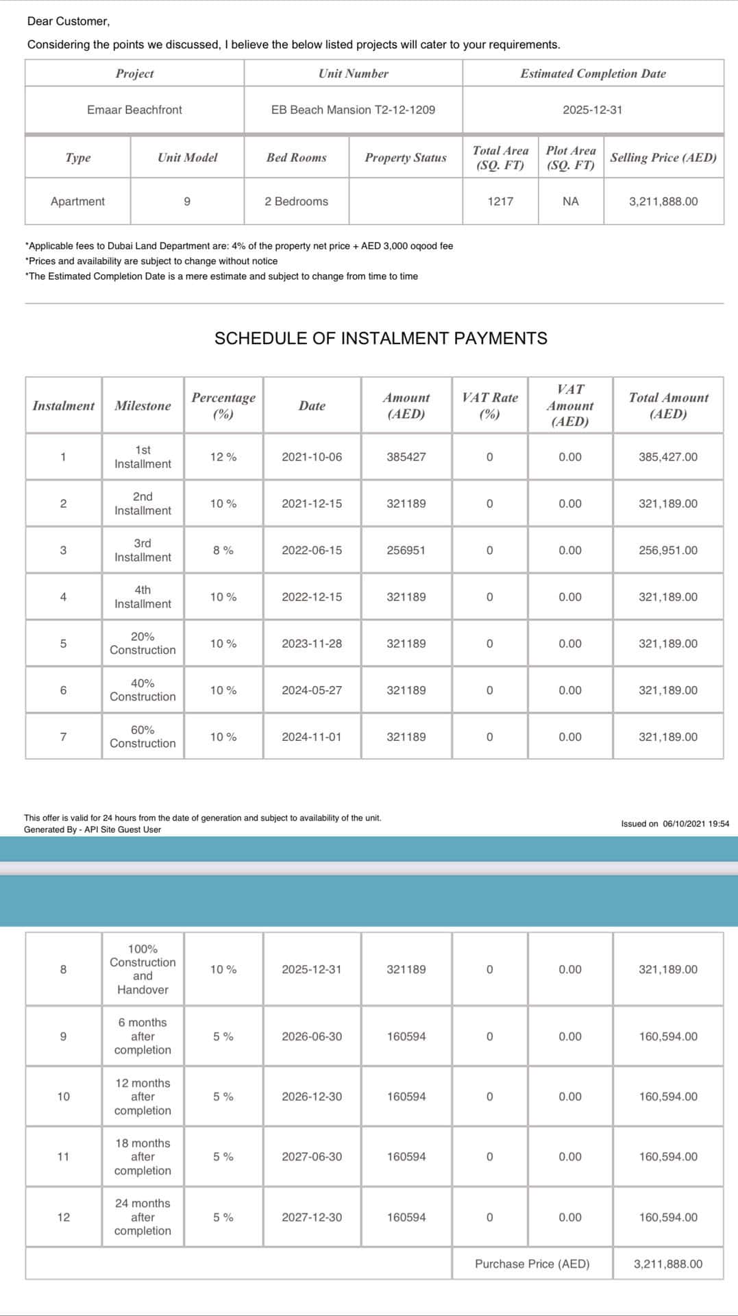 Auf der Emaar Beachfront im Gebäude Beach Mansion liegt diese wunderschöne 3 Zimmer  Neubauwohnung mit zeitnaher Fertigstellung 12.2025. Die Wohnung wir direkt vom deutschen Eigentümer aus privaten Gründen verkauft, der Paymentplan vom Bauträger wird übernommen und weitergeführt.