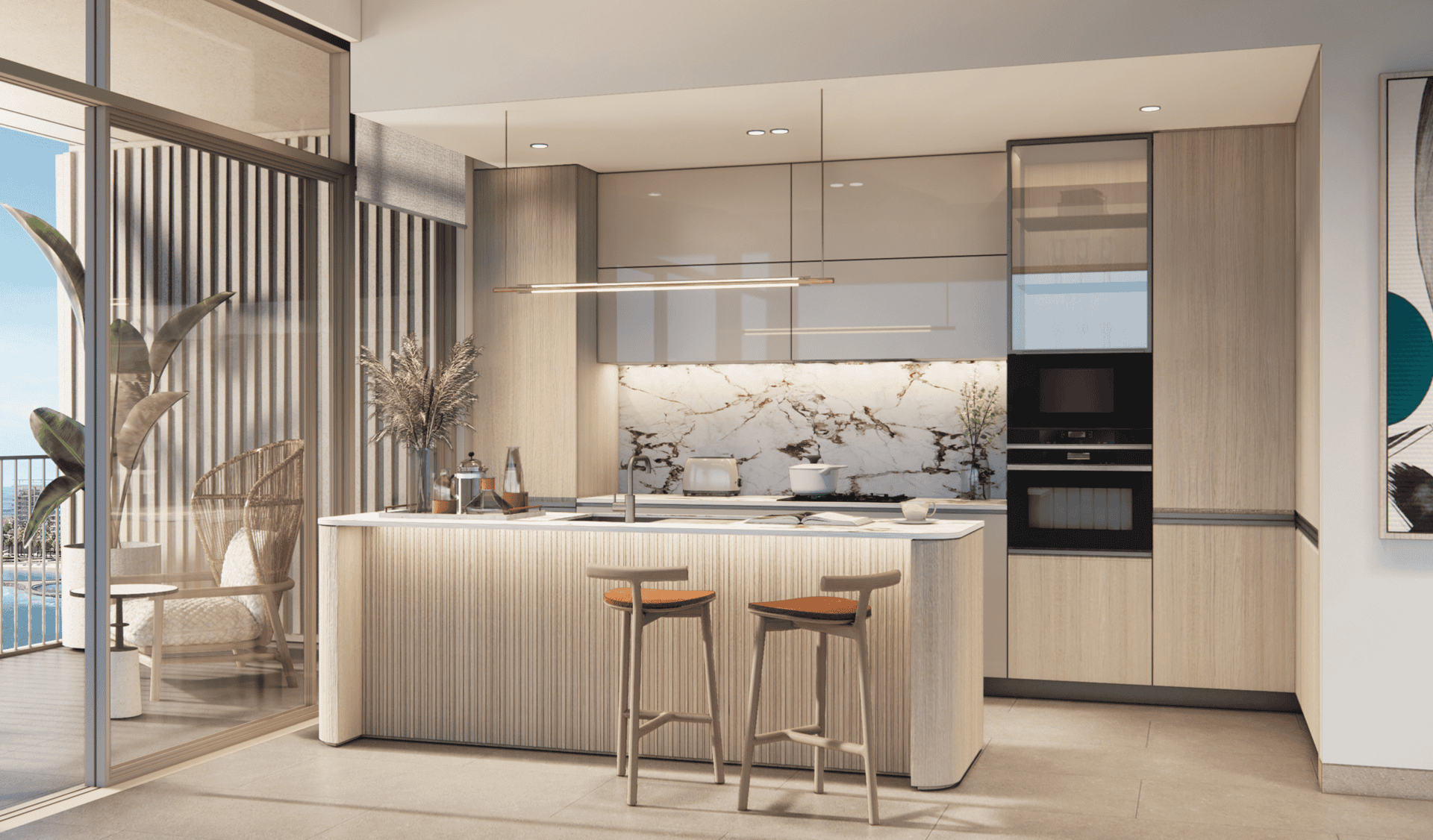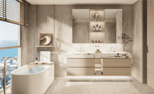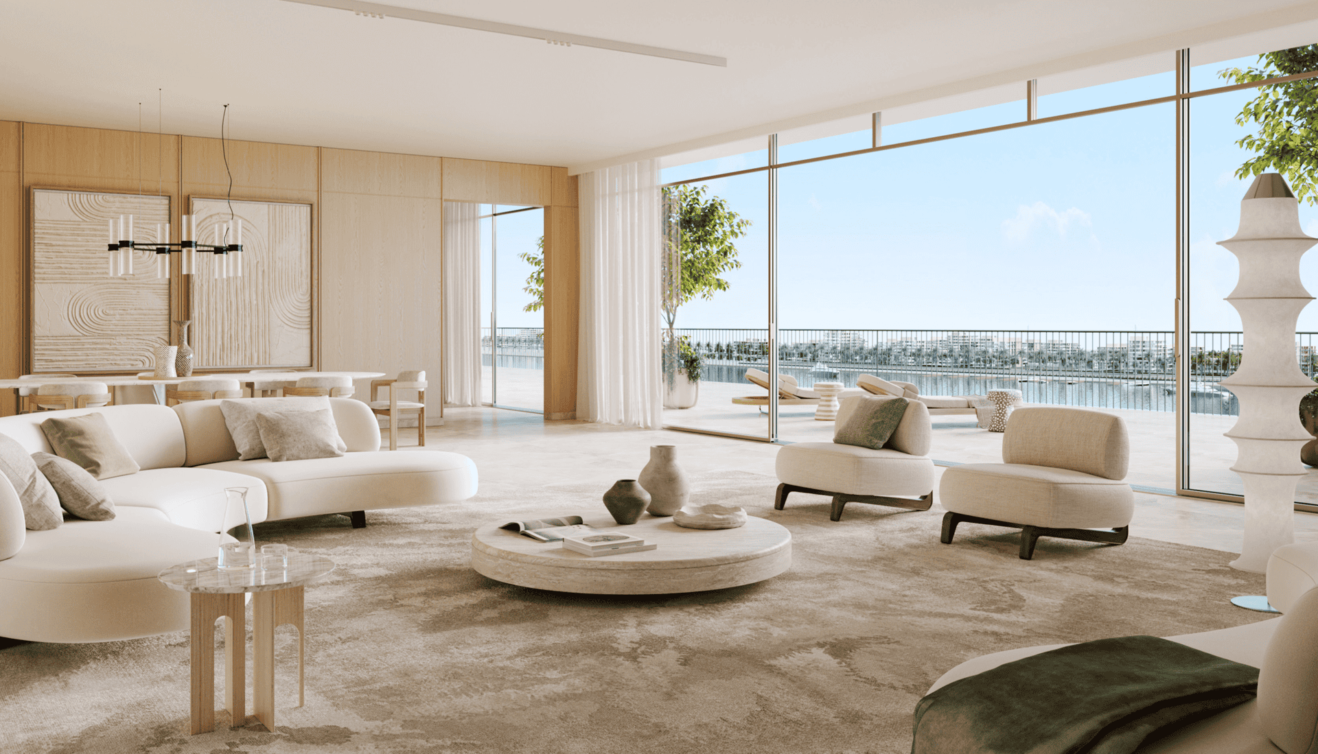 Alle Wohnungen bieten großzügige Terrassen mit atemberaubendem Blick auf die Marina, das Meer und die Gärten des Podiums.