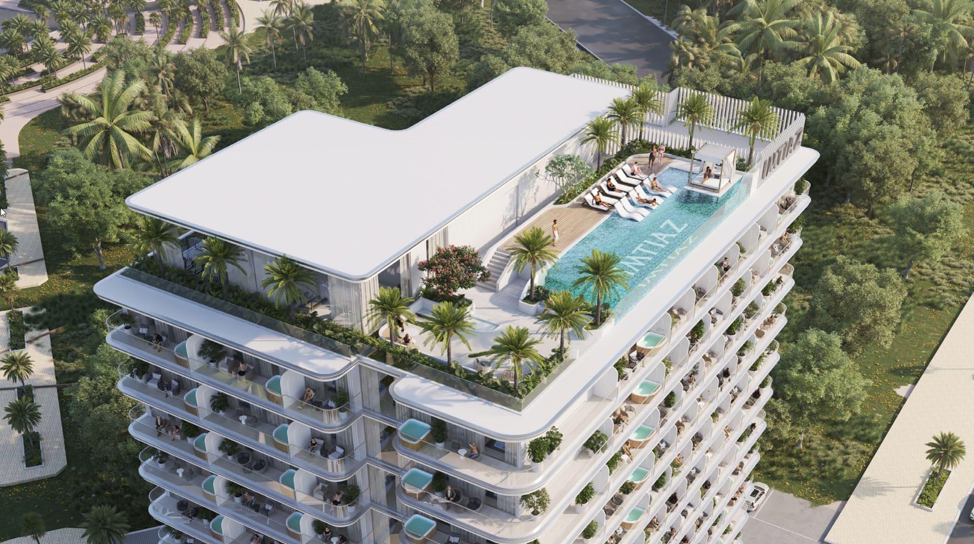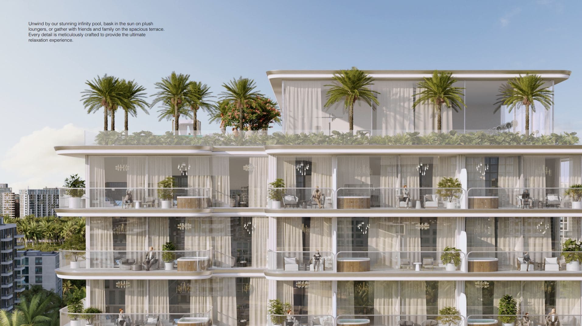 • Dachterrasse mit Infinity-Pool: Ein atemberaubender Ort, um den Blick über die Skyline Dubais schweifen zu lassen.