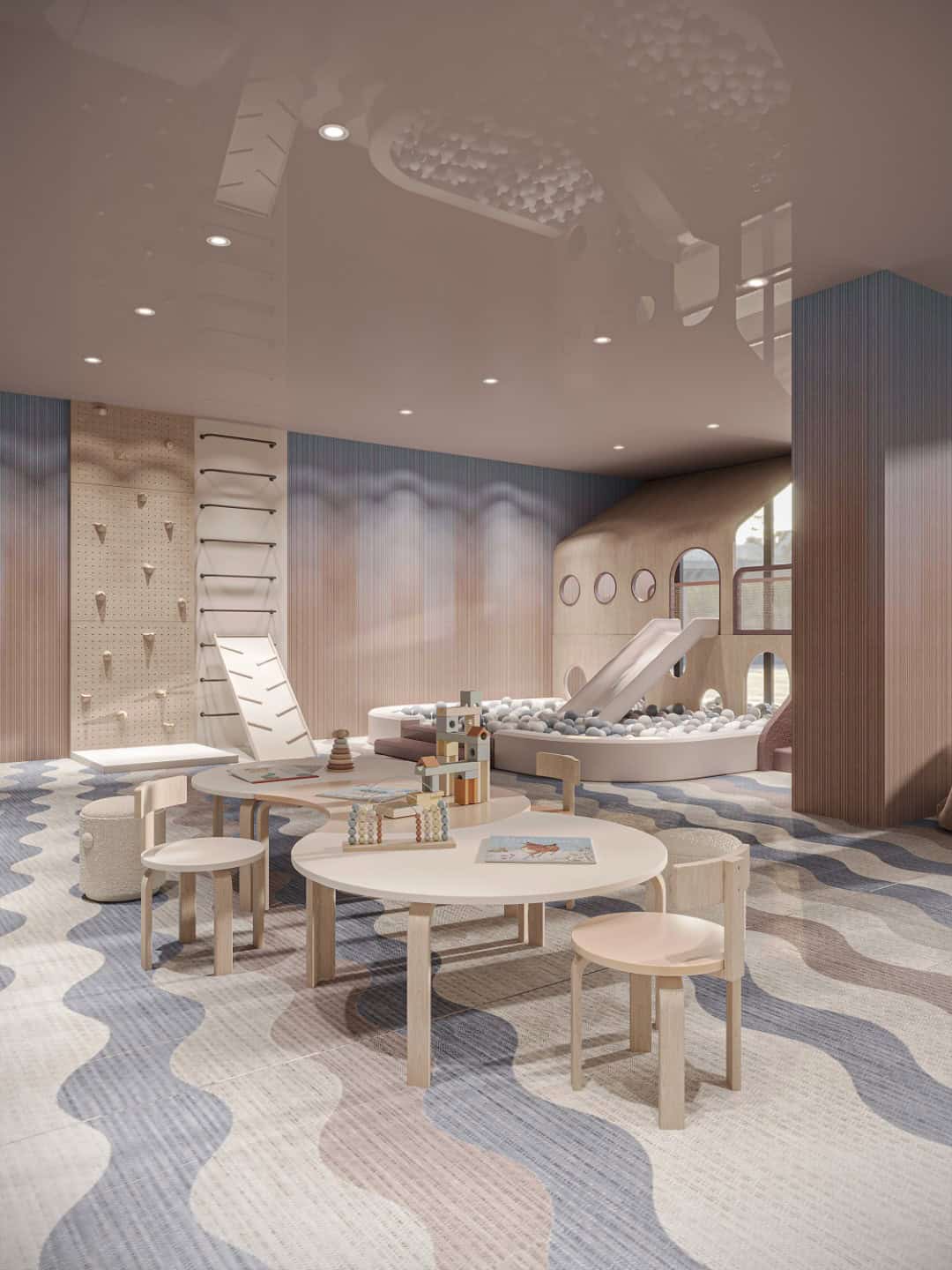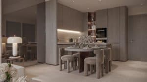 Exklusives Design von Versace Ceramics: Die Zusammenarbeit mit Versace Ceramics geht weit über Riesen- und Keramikapplikationen hinaus. Elemente von Versace Ceramics finden sich in der gesamten Innenausstattung wieder – von der prächtigen Lobby bis zu den Details in allen Räumen. Diese Kooperation hebt den Luxus und die Einzigartigkeit des Projekts auf ein neues Niveau.